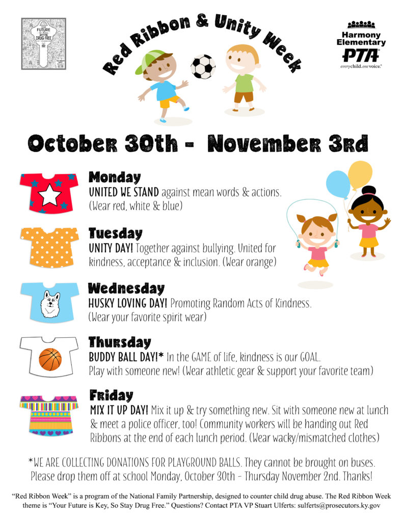 As we head back to school following fall break, our huskies will be recognizing National Red Ribbon Week as well as celebrating unity. The 2017 National Red Ribbon Week theme: Your Future Is Key, So Stay Drug Free™. There’s something new planned each day for huskies to take part in. If you are interested in finding out more about the Red Ribbon Campaign please visit www.redribbon.org