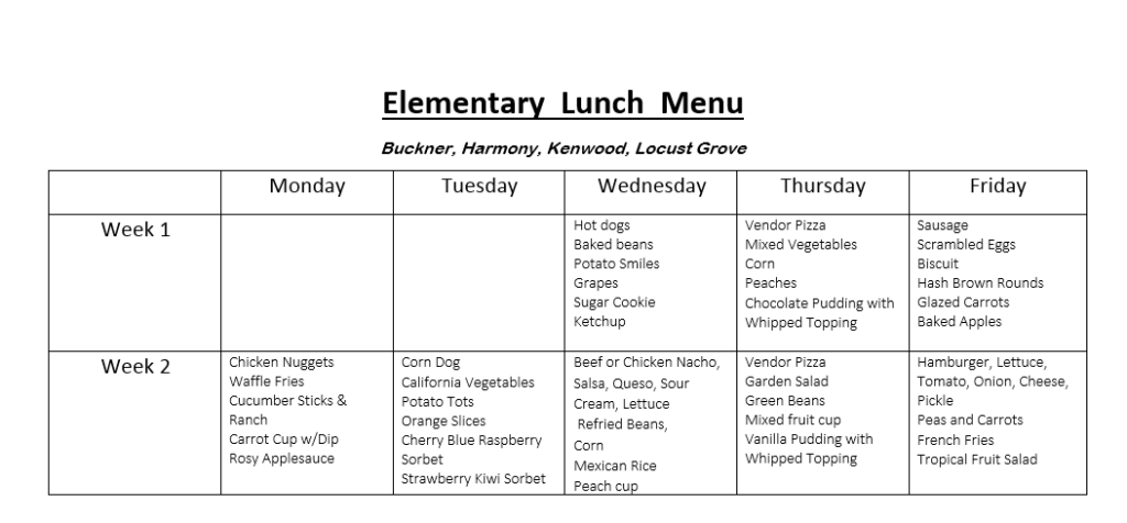 The school menu site is currently not working. So here are the menus for Harmony. Be sure to follow Oldham County School Nutrition on Facebook for updates.